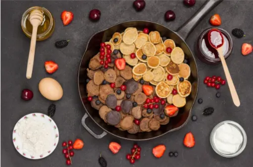 Whip up a show-stopping breakfast with a Cast Iron Dutch Baby Pancake. This puffy baked pancake is made by pouring a mixture of eggs, flour, milk, and sugar into a hot cast iron skillet and baking until puffed and golden. Top with fresh fruit, maple syrup, and a dusting of powdered sugar for a sweet start to your day.